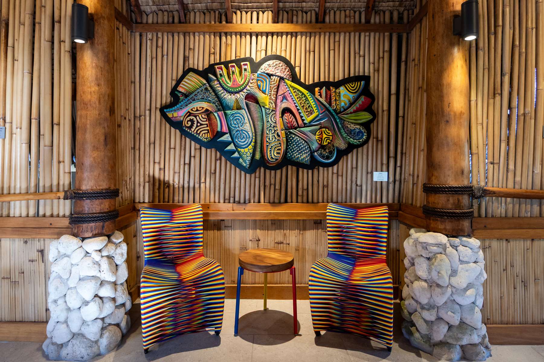 Dans notre hôtel, l’art fait partie de l'expérience. Il vous accompagne à chaque instant : dans les jardins fleuris, sur les murs des chambres, au détour d’un couloir ou au cœur de nos restaurants. Sculptures, peintures, objets symboliques ou clins d’œil aux légendes… L’art est partout, comme un fil invisible qui relie chaque recoin de l’hôtel à l’âme polynésienne.