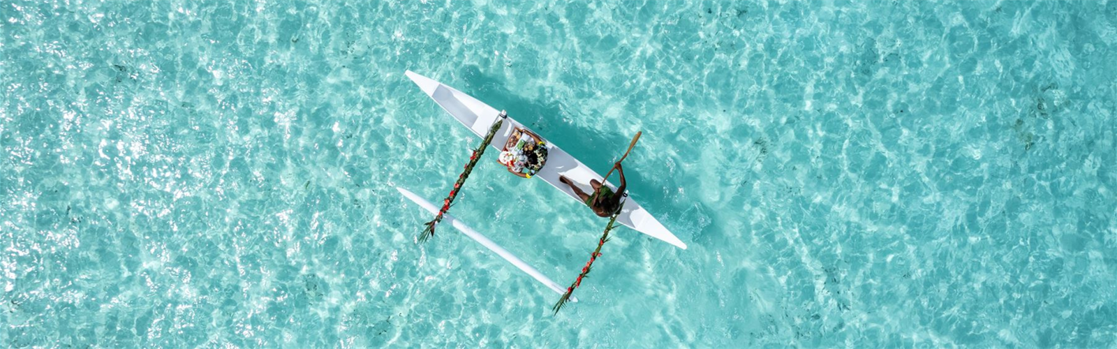 A la demande : petit-déjeuner dans votre bungalow, servi en pirogue si le temps le permet.